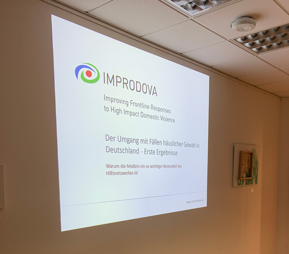 The IMPRODOVA project, as well as the process and the objectives were presented by Lisa Richter in a second part. First results of the situation in Germany were presented regarding the work of the different professions in cases of domestic violence. The importance of inter-agency cooperation was stressed, presenting the possibilities the physicians attending have to improve their work with victims of domestic violence